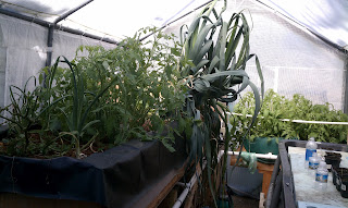 The leeks are beyond overgrown. I'd left them in for nitrate control, but now that the other plants are established, it's really time to remove them.